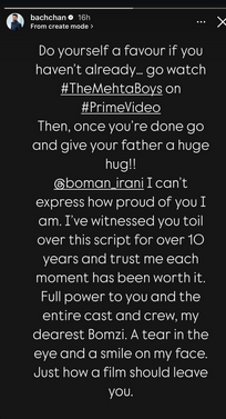 Boman Irani, clearly touched by the gesture, responded with warmth and gratitude: “It's been quite a journey @bachchan. Your message for #TheMehtaBoys — keep the love coming in.”