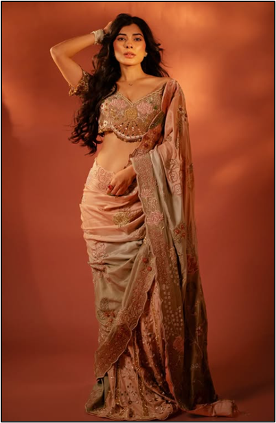What makes Sakshi stand out is her ability to transition seamlessly between her contemporary wardrobe and her Indian attire: