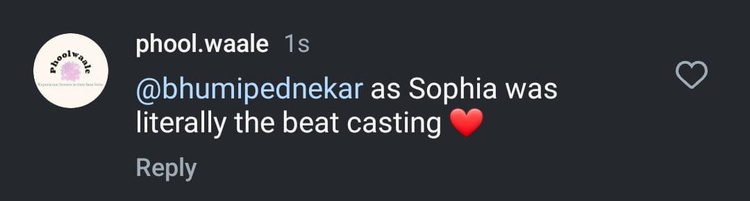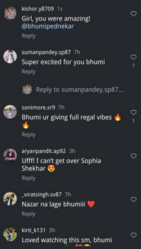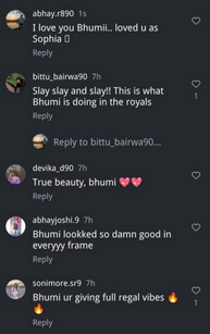 After Bhumi made her presence felt in The Royals, several users took to the comment section to praise her performance and her magnetic screen presence. One user wrote, “@bhumipednekar as Sophia was literally the best casting," while another wrote, "Bhumi killed it here." One user wrote, "In case anyone doubts Bhumi's acting, show them this scene, what an actress she is," and another wrote, "Bhumi showcased female rage flawlessly." One comment read, "@bhumipednekar delivered this scene so well," and another read, @bhumipednekar acting literally sweeped me off my feet." One user wrote, "Bhumi looked so damn good in every frame," and another wrote, "I mean gurl, it's BHUMI..She never disappoints." And it seems like the list of appreciation is never-ending for Bhumi!