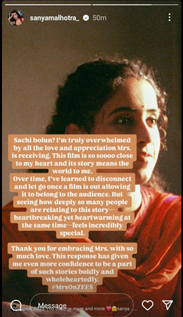 Sanya’s latest film Mrs. on ZEE5 may have been a simple story, but its impact was profound, the film resonated deeply with audiences and critics alike, proving once again that compelling storytelling triumphs over hype. Its success was solidified when Mrs. became the No. 1 searched movie on Google in India, making this birthday a celebration of yet another milestone in Sanya’s career.
