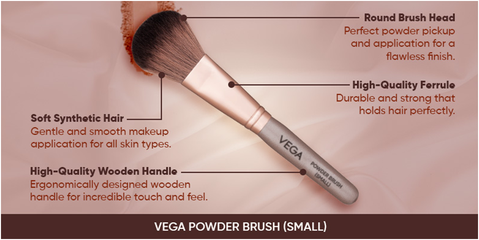 Using highlighterenhances the high points of your face like the cheekbones, brow bones, nose bridge, and cupid’s bow. It gives your skin a healthy, radiant glow, making your complexion look more awake, youthful, and refreshed. BuyVega Fan Brushto highlight cheekbones, nose bridge, and cupid’s bow to brighten up your makeup and get a salon-like professional makeup look. It is also designed to help you dust off excess makeup powder from the eyes, creases of the nose and overall face.