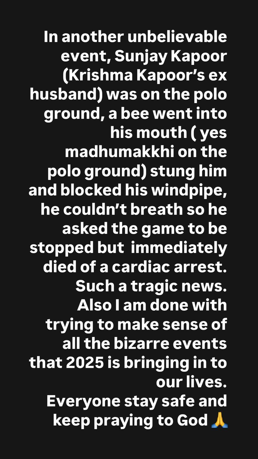 Yesterday, the nation witnessed a tragedy in the shape of an airplane crash in Ahmedabad. Sunjay Kapur had also reacted to the news and some hours after that, there came the unfortunate news of his passing. When Kangana said in the story, “I am done trying to make sense of all the bizarre events that 2025 is bringing into our lives”...we all relate to it somehow.