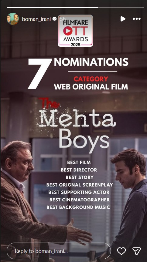 Actor–director Boman Irani couldn’t have asked for a more heartwarming milestone to mark his long-cherished leap into direction. The Mehta Boys — his debut film as a director — has secured seven major nominations at the Filmfare OTT Awards, making this moment a truly special celebration for him and his entire team. Sharing the news on Instagram, Boman expressed just how deeply this recognition resonates with him.