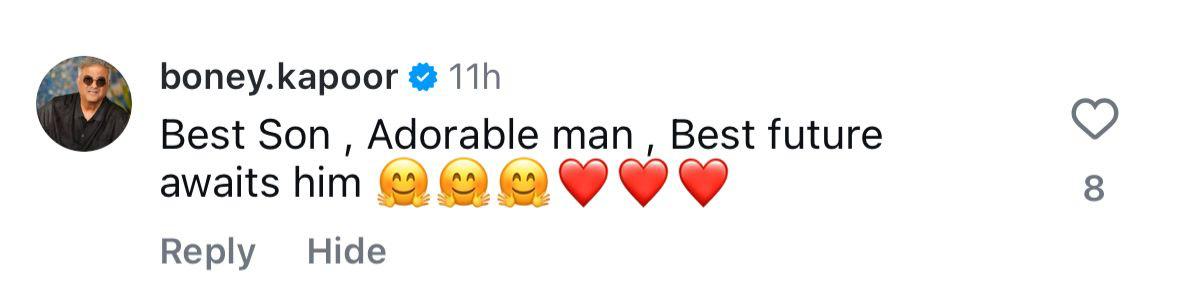 Boney Kapoor wrote, "Best son, Adorable man, Best future awaits him" Despite everything that Arjun has faced in his professional and personal life, Boney's comment reaffirms the audience's trust in Arjun. Besides Boney Kapoor and Arjun's fans, several actors and filmmakers, including Ranveer Singh, Siddharth Anand, and Tahira Kashyap also hyped him up.