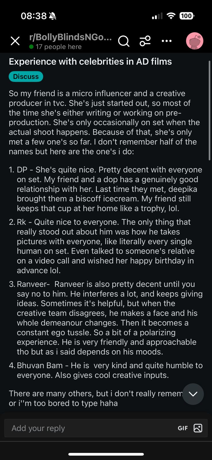 Among all the names, Bhuvan Bam stood out for receiving unanimously positive mentions. The Redditor described him as “very kind and quite humble to everyone” and someone who not only treats the crew with warmth but also offers “cool creative inputs” during shoots. His grounded attitude resonated strongly with readers, with many commenting that the praise aligned with his long-standing public image. In a thread filled with varied experiences, Bhuvan emerged as one of the most appreciated celebrities for his easygoing, respectful behaviour on set.