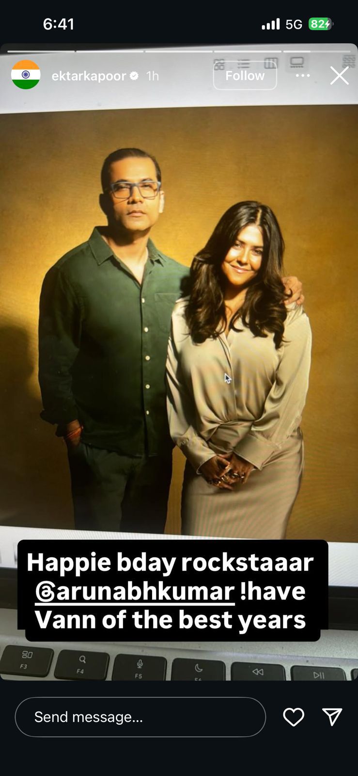 Renowned producer Ekta Kapoor took to her social media and shared a picture with Arunabh while wishing him on his birthday. Arunabh’s TVF and Ekta’s Balaji Motion Pictures are collaborating on their upcoming film, Vvan. While wishing Arunabh, she wrote —