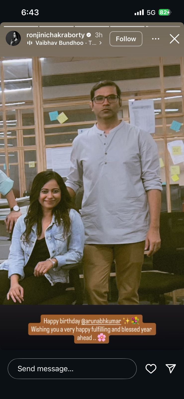 Ronjini Chakraborty, also shared a beautiful picture with Arunabh on his birthday. Ronjini has worked with TVF in Girliyapa, TVF Pitchers etc. She wrote while wishing Arunabh -