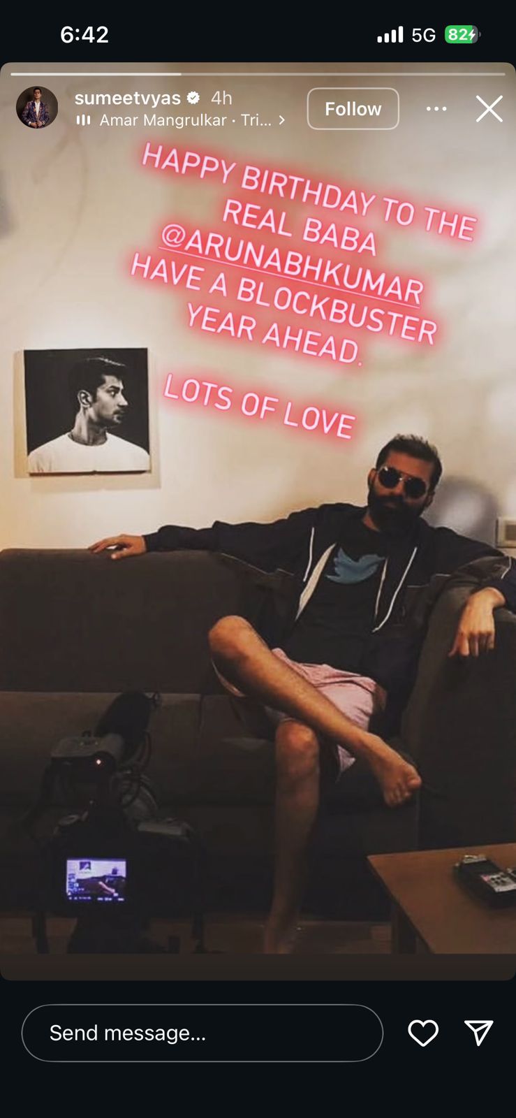 Than, Sumeet Vyas also wished Arunabh with a cool picture of his. Sumeet has extensively worked with TVF in shows like, Permanent Roommates and TVF Tripling which are few of the most loved web series among the audience. While wishing Arunabh, he wrote -