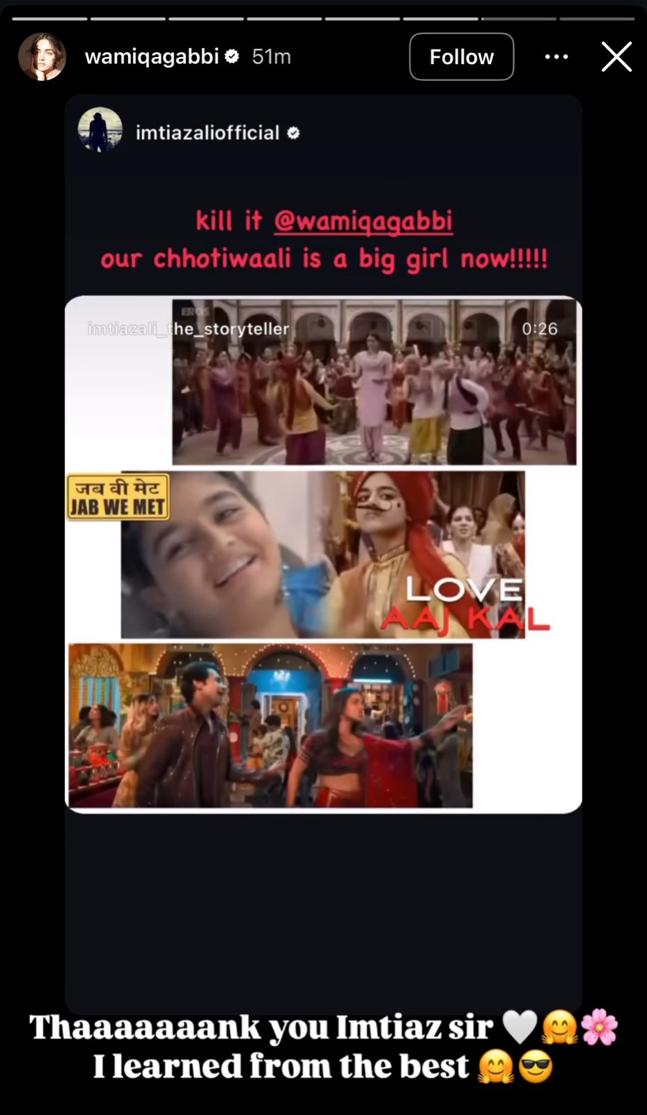 The post received a lot of love from the audience and her peers alike, among these was none other than Imtiyaz Ali. He shared Wamiqa’s post on his social media and shared,