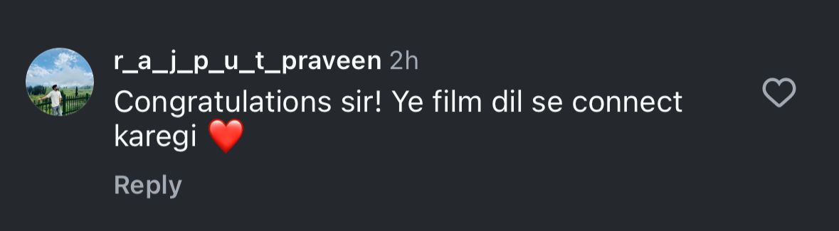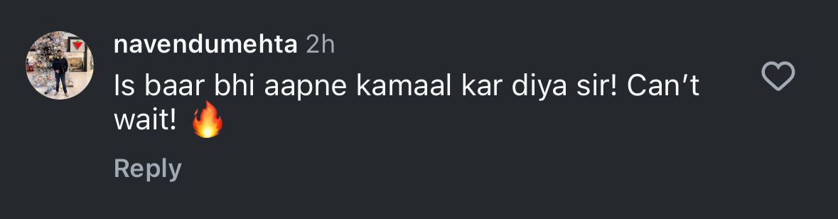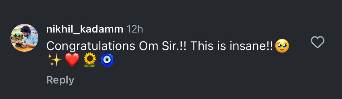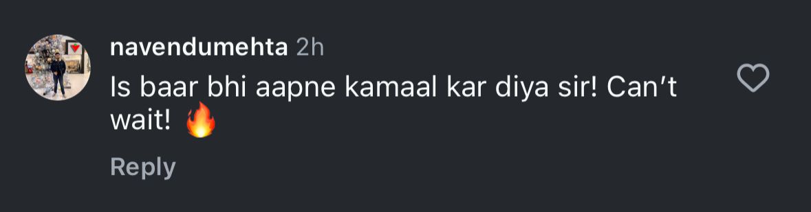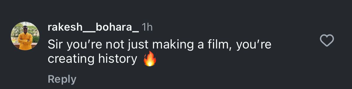 Expressing views about the biopic, Om Raut and his collaboration with Dhanush, one netizen wrote, "Aap sirf cinema nahi bana rahe, legacy bana rahe ho," while another wrote, "Ek aur iconic story aapke haathon se! Proud moment sir." A comment read, "Sir, you're not just making a film, you're creating history," and another read, "Visual storytelling ka agla level lag raha hai already." A user wrote, "Definitely Om Raut's direction is gonna rock in this movie," and another wrote, "Iss baar bhi aapne kamaal kar diya sir! Can't wait."