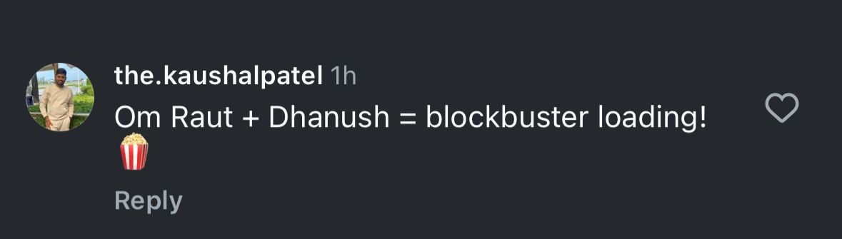 A user also congratulated Om Raut and said, "Ye film dil se connect karegi," while another heaped praise on his collaboration with Dhanush and termed the film "Blockbuster loading." Expressing excitement about Om Raut's directorial vision, one user wrote, "Eagerly awaiting the return of Om Raut's original spirit that gave us masterpieces like Lokmanya and Tanhaji," and the appreciation continues to pour in!