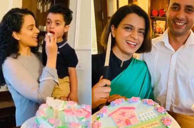 In the video, Rangoli is seen celebrating by cutting delicious cake that has a 'house' made on it. For this joyous occasion, Rangoli opted for a green saree paired with a beautiful black blouse, while Kangana looked chick cool and comfortable wearing a light blue top paired with denims.