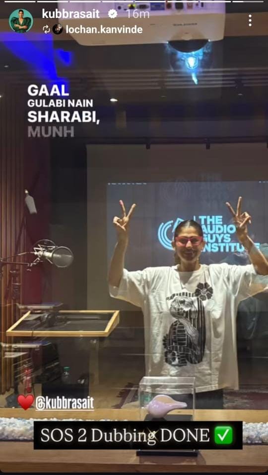 MUMBAI: Kubbra Sait is all set to bring something fresh to the big screen once again — this time as part of the high-octane entertainer Son of Sardaar 2. The actress has officially completed dubbing for the much-anticipated sequel and marked the moment with a cheerful behind-the-scenes picture from the studio. With headphones on, mic in front, and her trademark radiant smile, Kubbra captioned the image simply: “SOS 2 DUBBING DONE.”