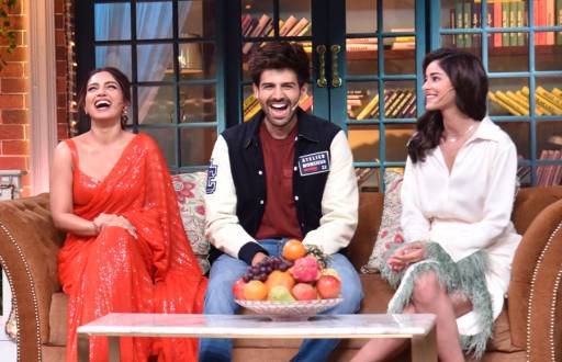Pati Patni aur Woh actors on the sets of The Kapil Sharma Show