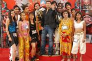 Star Plus' <a href= http://www.tellychakkar.com/news/music-biggies-star-plus-reality-show>Music Ka Maha Muqqabla</a> had its participants and audience awestruck when Badshah of Bollywood, <a href= http://www.tellychakkar.com/news/srk-s-fauji-2-canned> Shah Rukh Khan</a> and Karan Johar arrived on the sets to promote their new film.