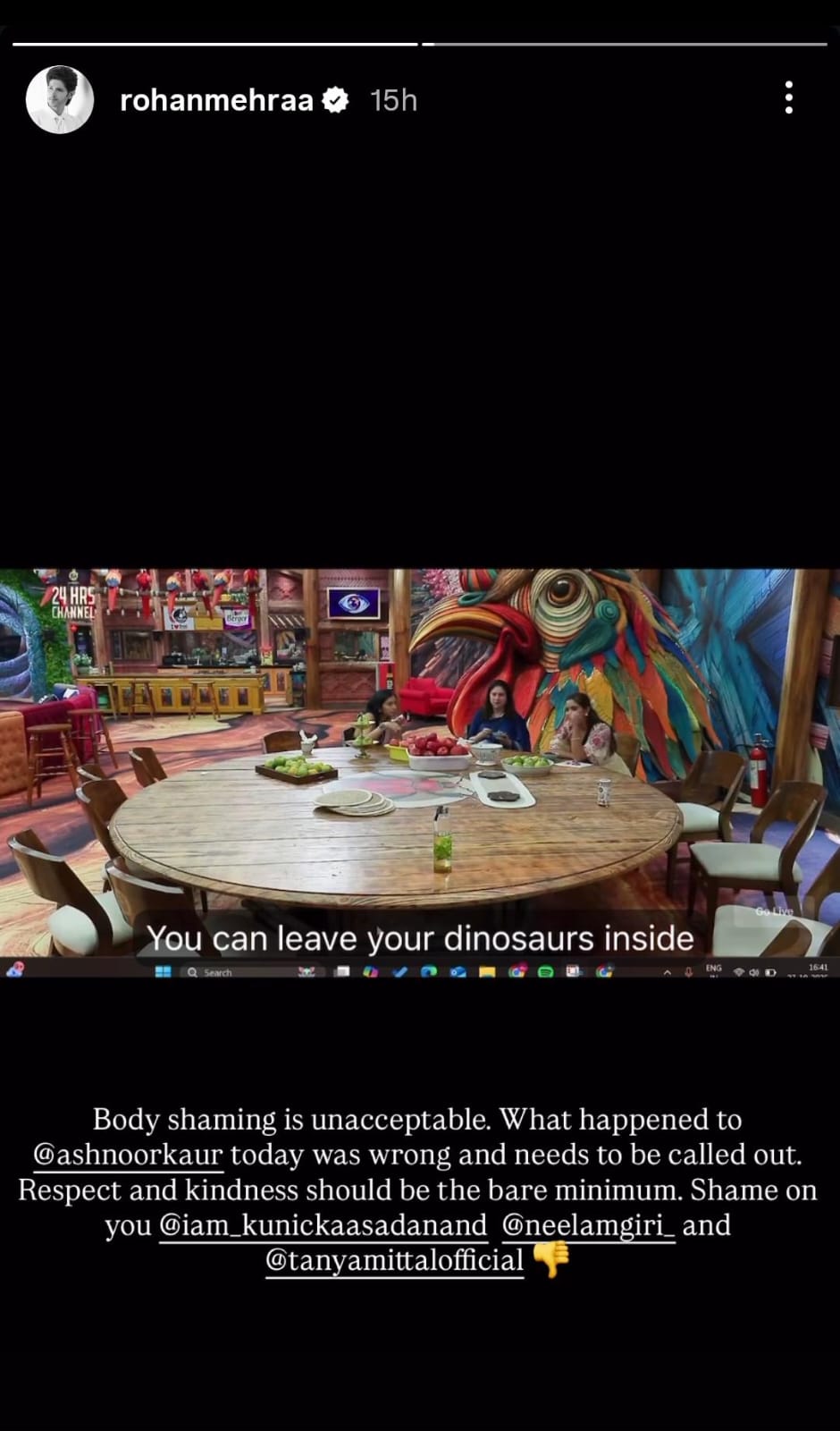 After the clip went viral on social media, Ashnoor’s rakhi brother and Yeh Rishta Kya Kehlata Hai co-star Rohan Mehra came out in her support, defending her against the harsh comments made by the female contestants.
