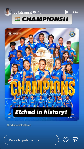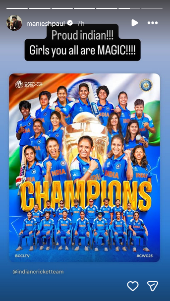 Joining the celebration of the historic win and the moment of the nation’s pride, Bollywood stars, from Kartik Aaryan, Pulkit Samrat, Esha Gupta, Nushrratt Bharuccha, to others, took to social media to celebrate the team’s monumental win, lauding the players for ending a nearly 50-year dry spell with their performance and confidence.
