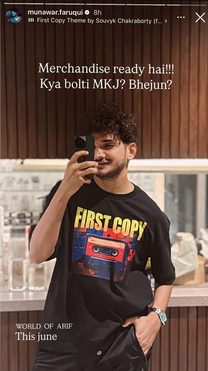 Building anticipation ahead of the launch, Munawar gave fans a glimpse of the show’s official merchandise. In a recent Instagram story, he was seen donning a t-shirt printed with the show's title, “First Copy,” alongside the cheeky caption: “Merchandise ready hai! MKJ bhejun?” The drop reflects the tone of the series — edgy, authentic, and rooted in real issues.