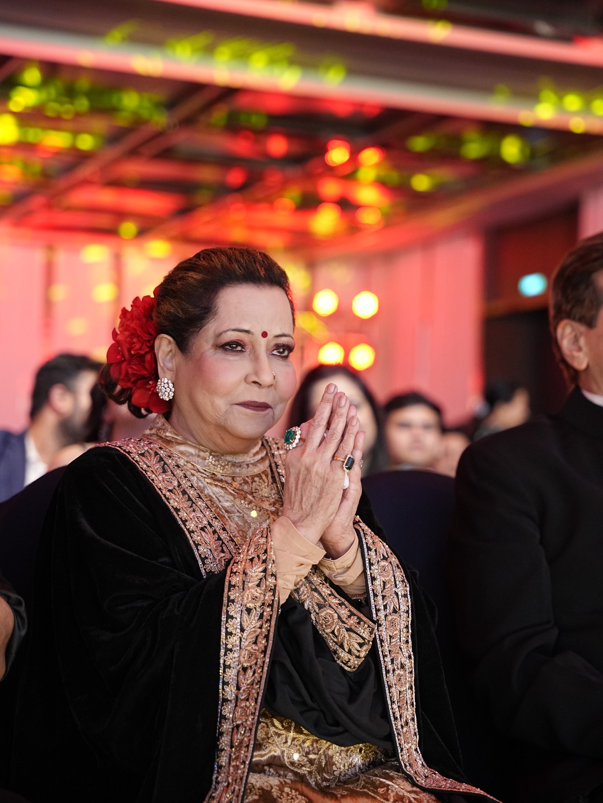 • Veteran actor Jeetendra presenting the award to wife Shobha Kapoor, creating a timeless moment.