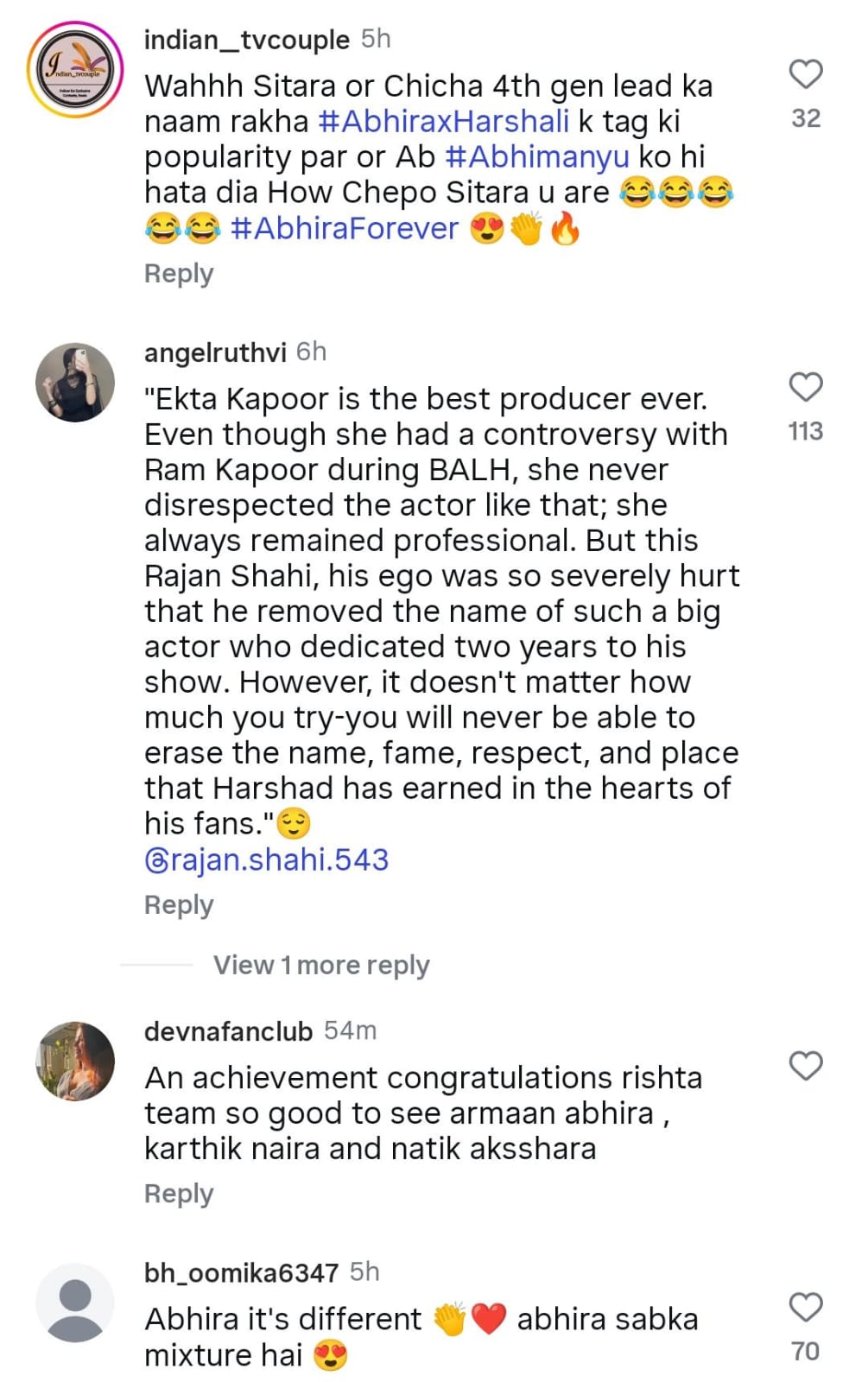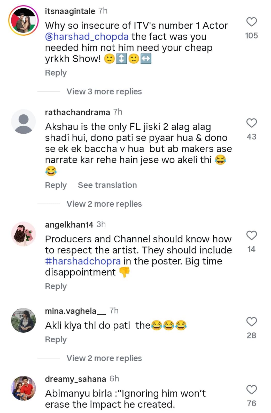 Take a look at the fans' comments on Harshad Chopda's absence from the montage: